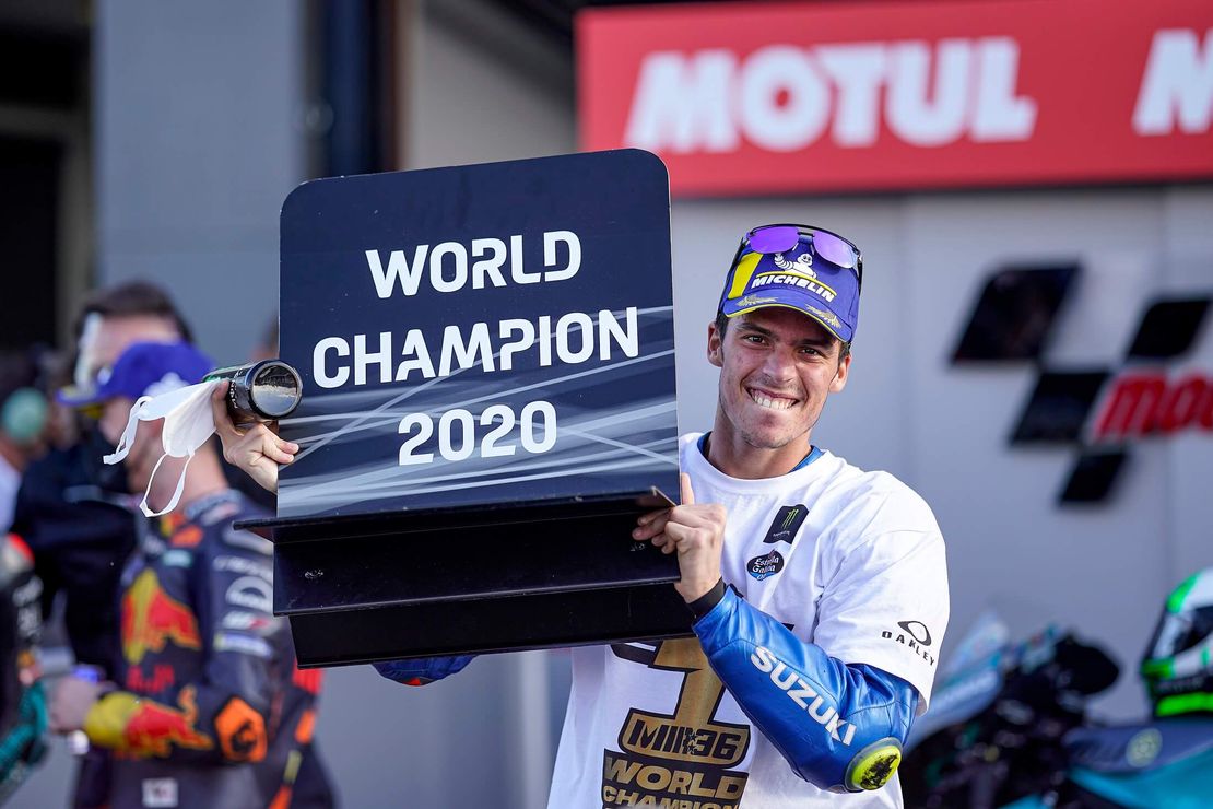 Гонщик Джоан Мир, представляющий команду Suzuki Ecstar, стал чемпионом сезона-2020 по шоссейно-кольцевым мотогонкам.